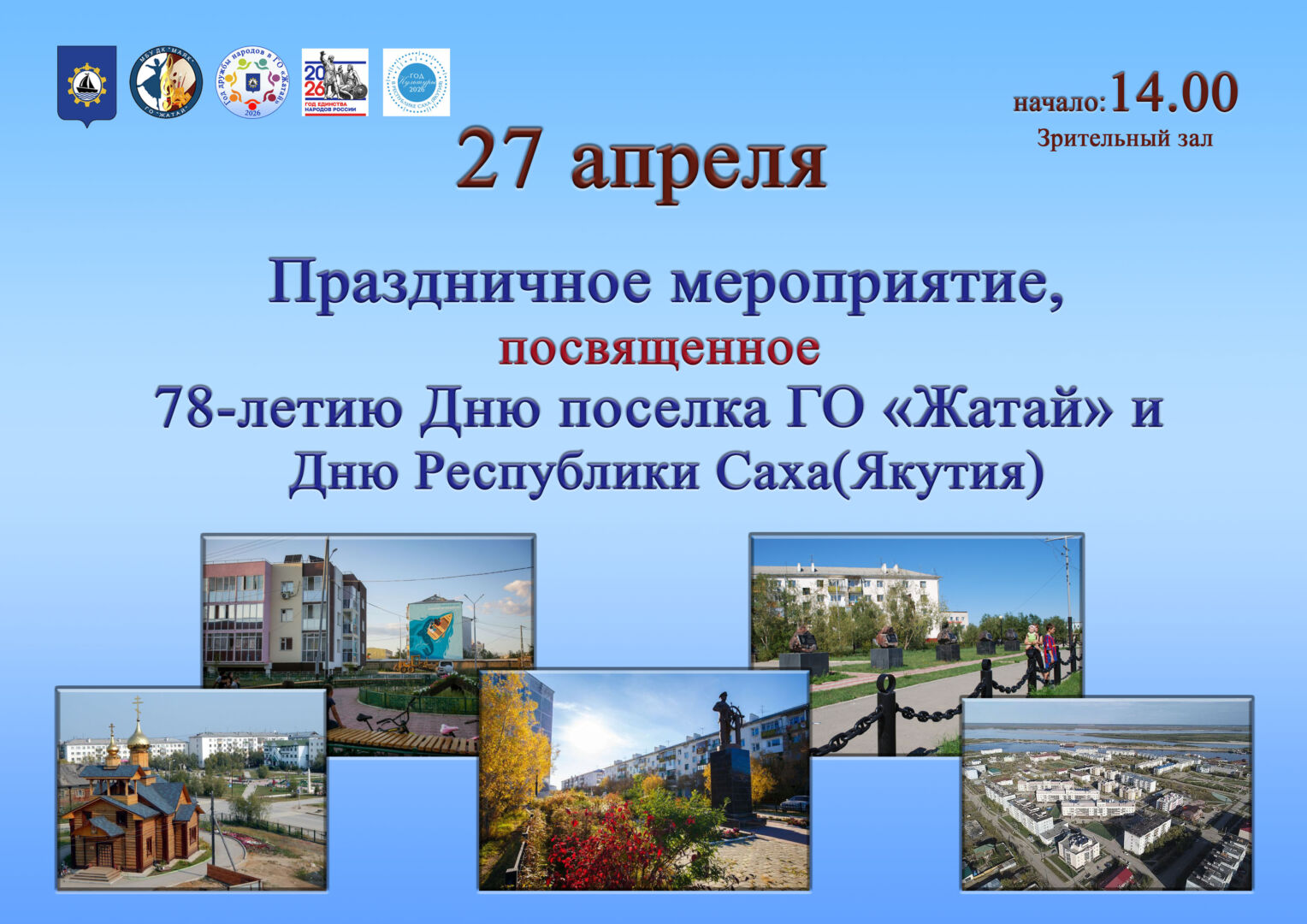Дорогие жители и гости Городского округа «Жатай»! Приглашаем вас на праздничное мероприятие, посвящённое двум значимым событиям: 78‑летию посёлка ГО «Жатай», Дню Республики Саха (Якутия). Дата: 27 апреля в 14.00.Место проведения: Дом культуры «Маяк». Этот день станет настоящим праздником единства, гордости и уважения к истории нашего поселка. Мы верим, что этот день объединит людей разных поколений и профессий, напомнит о наших корнях и вдохновит на новые свершения во благо посёлка и Республики. Давайте вместе отметим эти важные даты и создадим яркие воспоминания, которые останутся с нами надолго! Ждём вас на мероприятии!