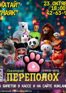 СКАЗОЧНЫЙ ПЕРЕПОЛОХ…🗓️ 23 ОКТЯБРЯ🕰️ 18:00📍ДК «МАЯК»🎫 800₽-900₽-1000₽Дети до 3-х лет бесплатно(без предоставления отдельного места) 🎫 Продажа билетов в кассеи на сайте kuklandiya.ru☎️ 42-63-92📲 организатор:8-960-875-83-55 СКАЗОЧНЫЙ ПЕРЕПОЛОХ…Хотите попасть в сказку?Тогда вместе с нашими героями отправляемся в путешествие.День рождения Кошечки-Лапки обернулся для неё настоящей катастрофой, ведь пропал её лучший друг Мишка.Наша отважная Кошечка отправляется на поиски.Для спасения Мишки […]