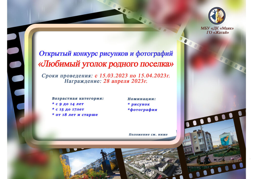 Любимый уголок родного поселка10/03/2023213нет ПОЛОЖЕНИЕ Открытого конкурса рисунков и фотографий «Любимый уголок родного поселка» Общие положения 1. Настоящее Положение определяет задачи, конкурсные ... Метки: