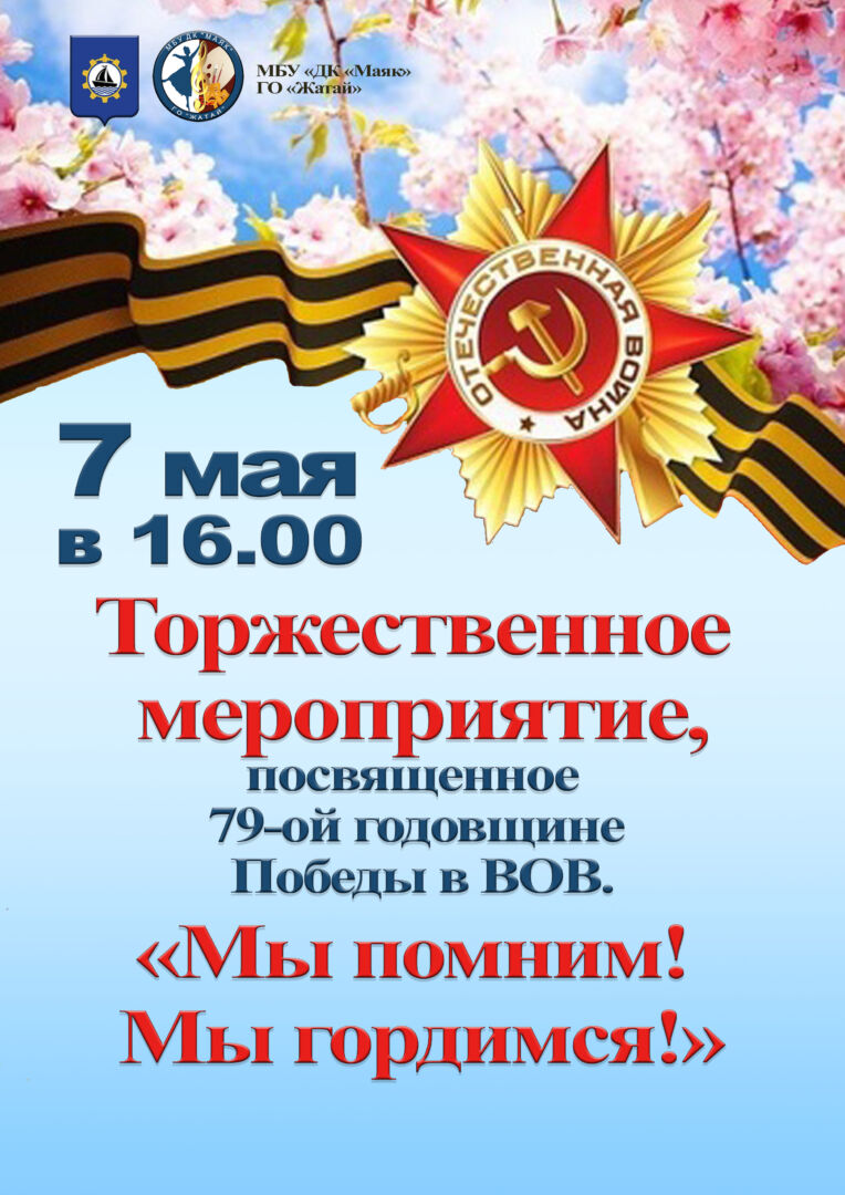 7 мая в 16.00 в ДК «Маяк» пройдет Торжественное мероприятие, посвященное 79-ой годовщине Победы в ВОВ «Мы помним! ...