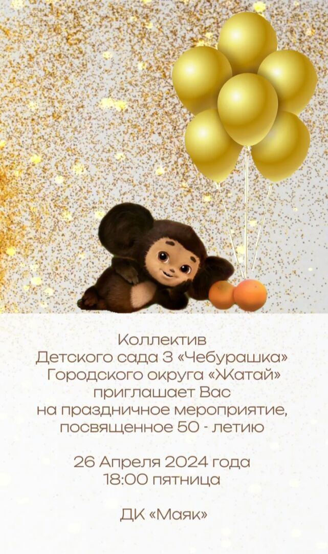 В ДК «Маяк» 26 апреля в 18.00 пройдет праздничное мероприятие, посвященное 50 — летию Детского сада №3 «Чебурашка» ...