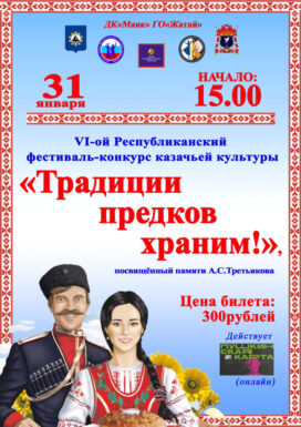 VI-ый Республиканский фестиваль — конкурс казачьей культурыПОЛОЖЕНИЕ VI-го Республиканского фестиваля — конкурса казачьей культуры «Традиции предков храним!», посвящённого памяти Третьякова Анатолия Спиридоновича. Организаторы: МБУ ДК «Маяк» ГО «Жатай», при поддержке Жатайского Станичного Казачьего Общества и Администрации ГО «Жатай». Цель: Патриотическое воспитание, гражданское и духовное становление детей и молодёжи на основе изучения и сохранения истории и культуры России, традиций и обычаев казачества. […]