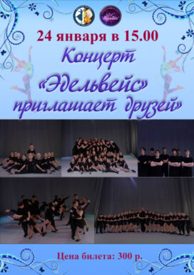 «Эдельвейс» приглашает друзей!✨Приглашаем на концерт 👨👩👦👦24 января, начало в 15:00 Дом культуры «Маяк» 💃Народный хореографический коллектив «Эдельвейс» приглашает друзей! 💸Стоимость билета: 300 рублей