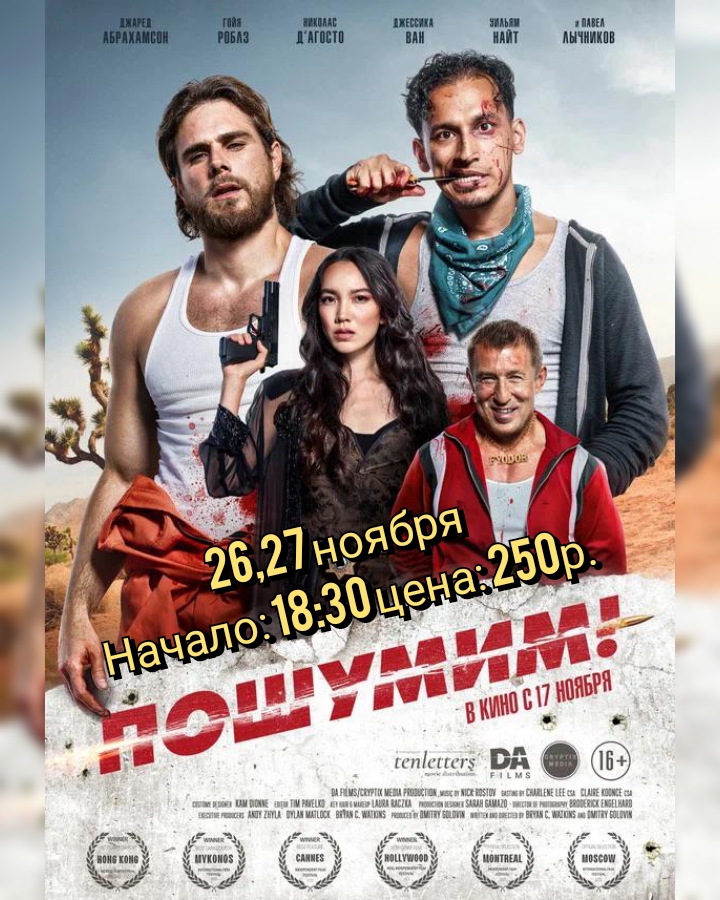 Афиша кинозала на 7,8,9,10,11 июня17:00 — Мармадюк. —250руб 18:30 — Мармадюк. —250руб 20:00 — Каха. Другой фильм —250руб