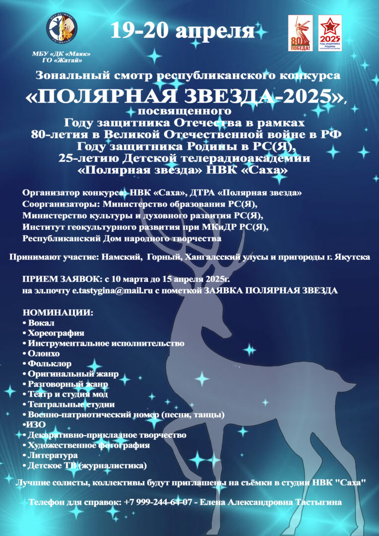 Приглашаем Вас принять активное участие в зональном смотре республиканского конкурса ️«ПОЛЯРНАЯ ЗВЕЗДА-2025»️ посвященного Году защитника Отечества в рамках 80-летия ...