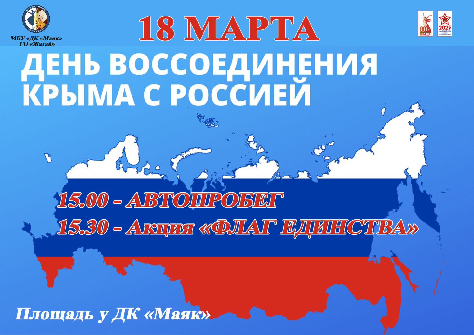 18 марта 15.00 — АВТОПРОБЕГ (сбор на площади ДК «Маяк» в 14.30)