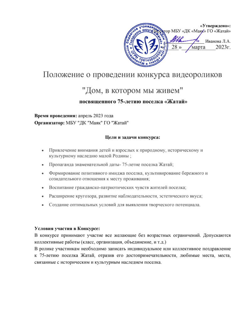 Видеоролики, порочащие имидж поселка, а также несущие экстремистскую направленность к участию в конкурсе не допускаются.
