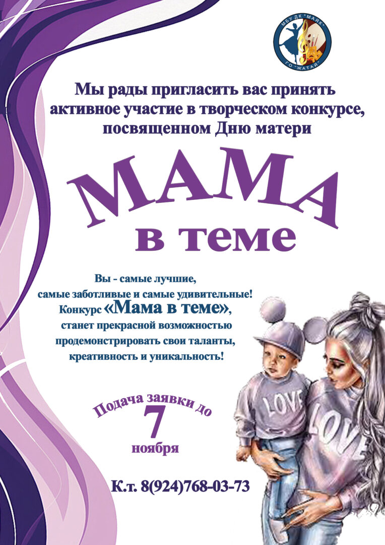 Вы — самые лучшие, самые заботливые и самые удивительные! Мы рады пригласить вас принять участие в нашем конкурсе «Мама в теме», который станет прекрасной возможностью продемонстрировать свои таланты, креативность и уникальность!
