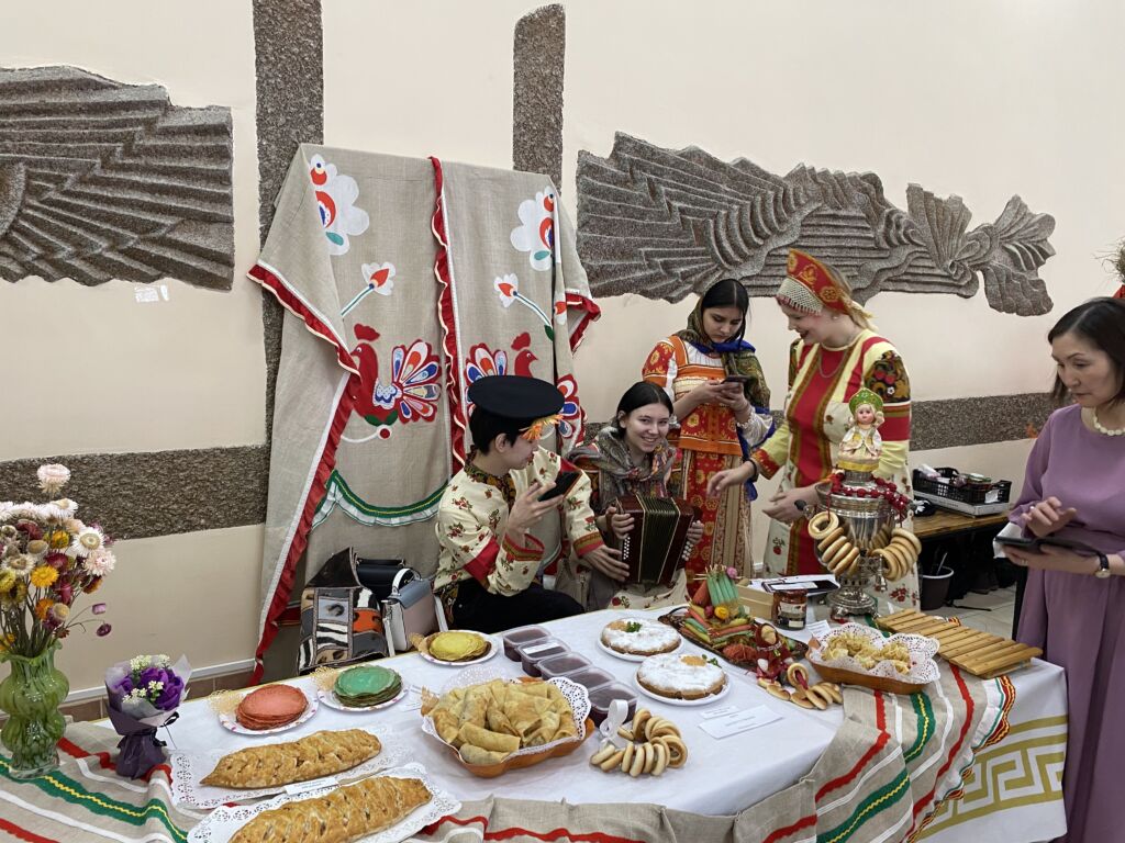 На празднике звучала веселая народная музыка, создавая настроение радости, веселья и задора.