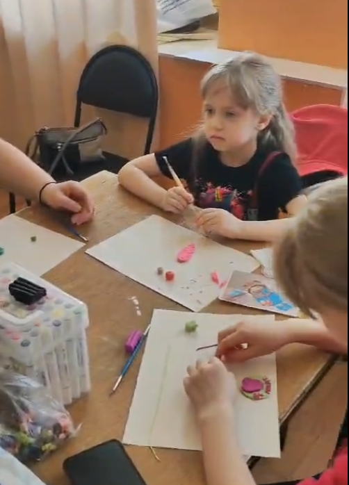 Готовые талисманы дети вложили в конверты и передали волонтерам для отправки нашим защитникам.