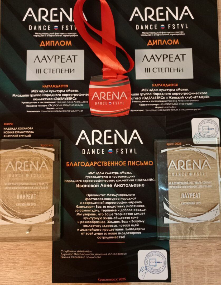 В данном фестивале-конкурсе приняли участие Народный хореографический коллектив «Эдельвейс» и женская группа «Грация» Дома культуры «Маяк» Городского округа «Жатай» под руководством Заслуженного работника культуры РС(Я) Ивановой Лены Анатольевны.