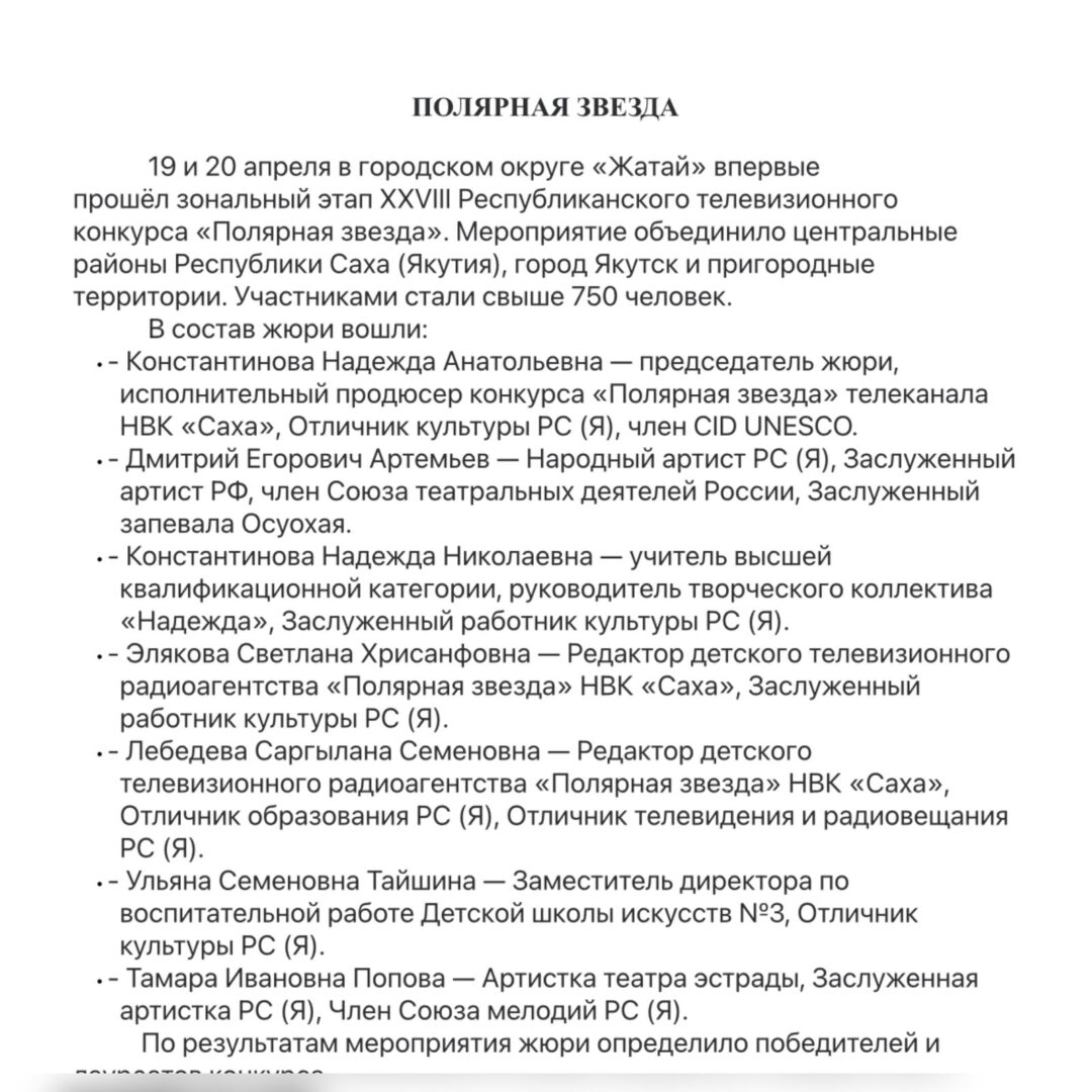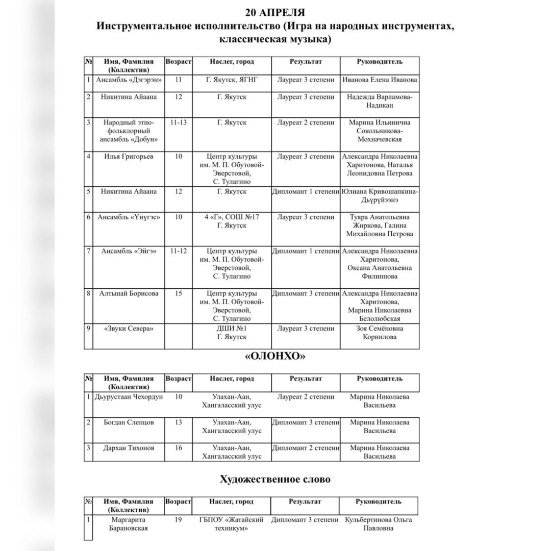 Хомус дьүрүскэнэПОЛОЖЕНИЕ об организации и проведении Республиканского конкурса «Хомус дьүрүскэнэ», посвященного 80-летию Победы в Великой отечественной войне, Году защитника Отечества в Российской Федерации, Году защитника Родины в Республике Саха (Якутия) Требования к конкурсным композициям: -Для участия допускаются композиции только с использованием традиционных приемов исполнения на хомусе; -Каждый ансамбль предоставляет 1 композицию продолжительностью не более 5 минут, […]