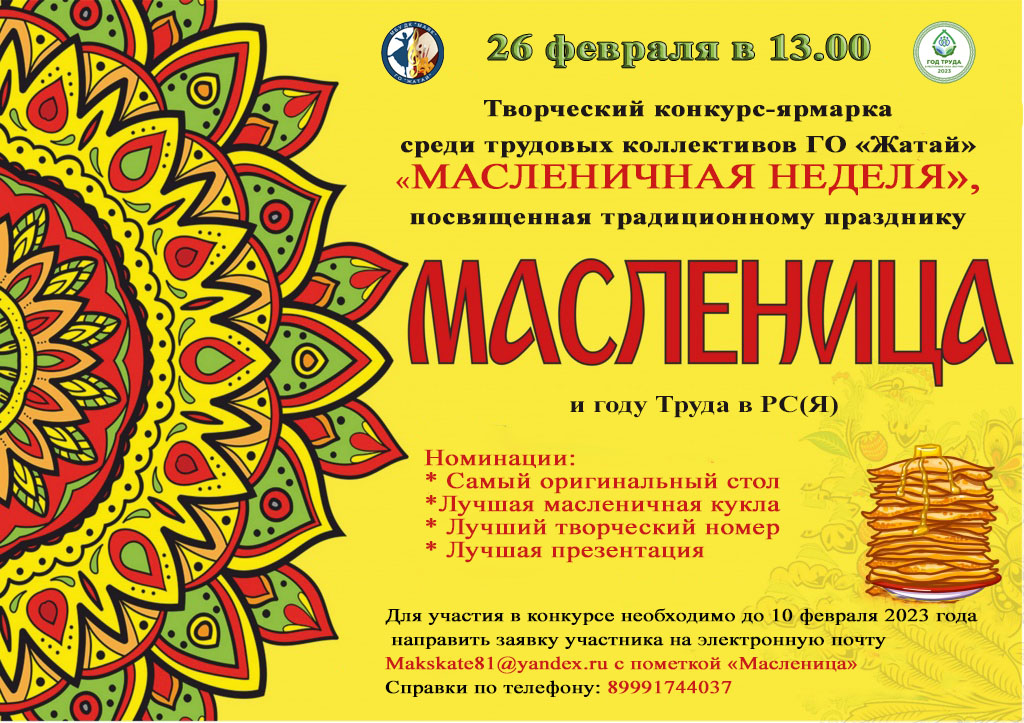 - Для участия в Конкурсе необходимо до 10 февраля 2023 года направить заявку участника на электронную почтуMakskate81@yandex.ru с пометкой «Масленица».